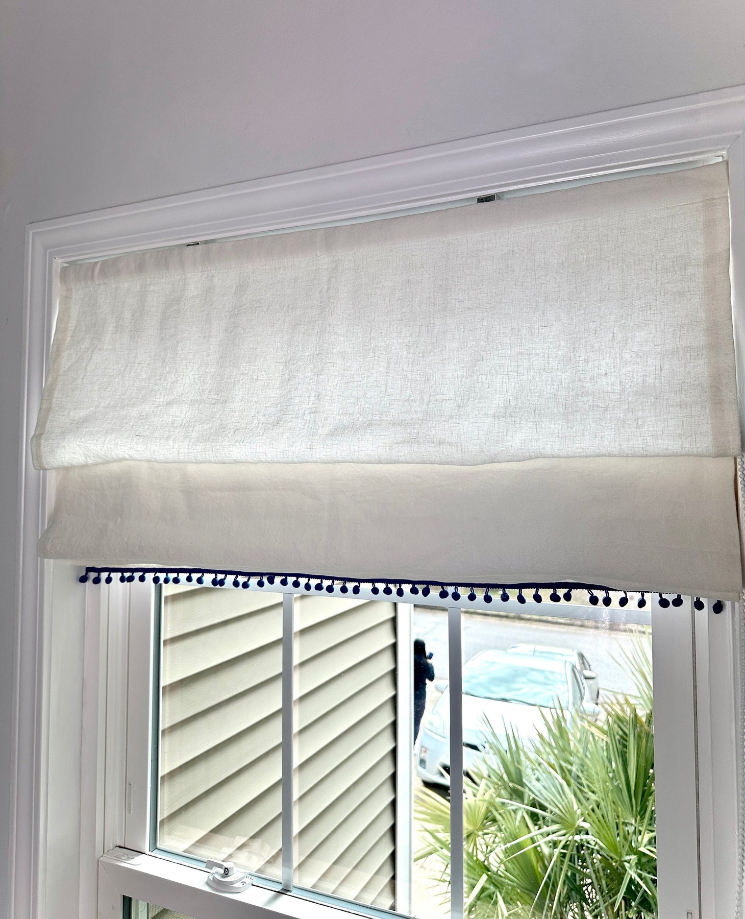 Mid-Heavy Linen Roman Shades with Pom-Poms