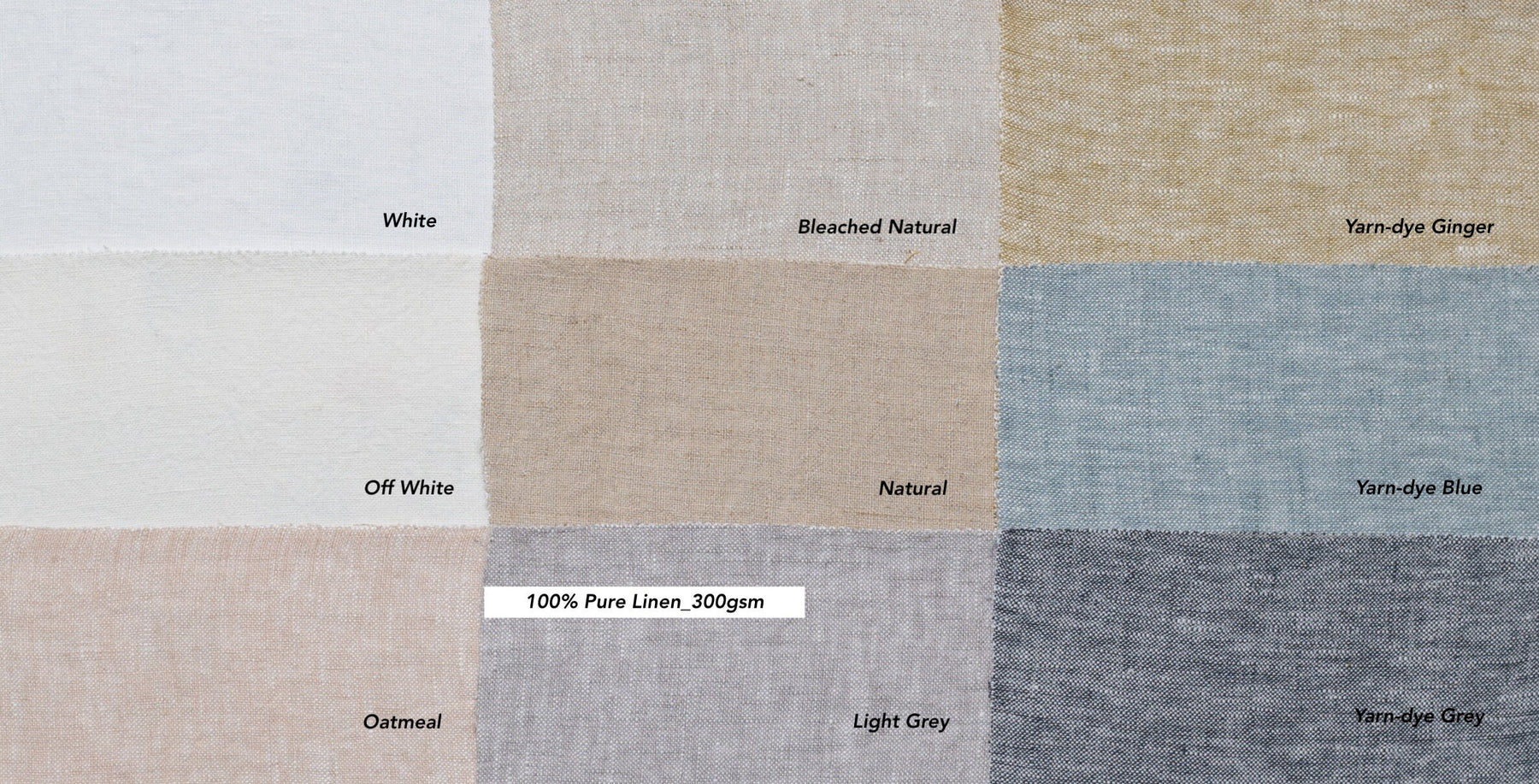 Featured: 100% Pure Linen 300gsm White with white privacy lining, flat fold with dowels, blue pom-poms, stacks to ~9" when raised.